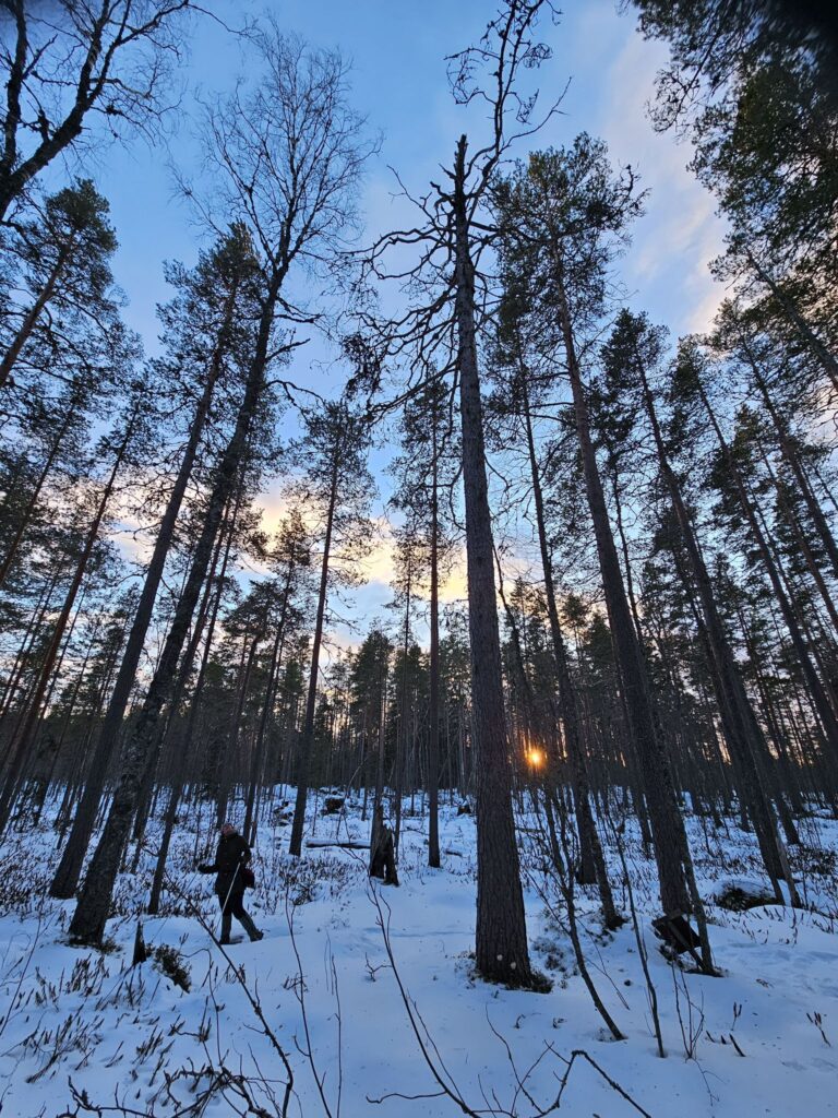 Suolla hiihtäminen on niin mukavaa. Pidimme yhtenä päivänä lounastaukoa pienellä kalliolla metsikön reunassa, mihin ei ilman suksia pääsisikään. Siellä oli kivaa ja kaunista.