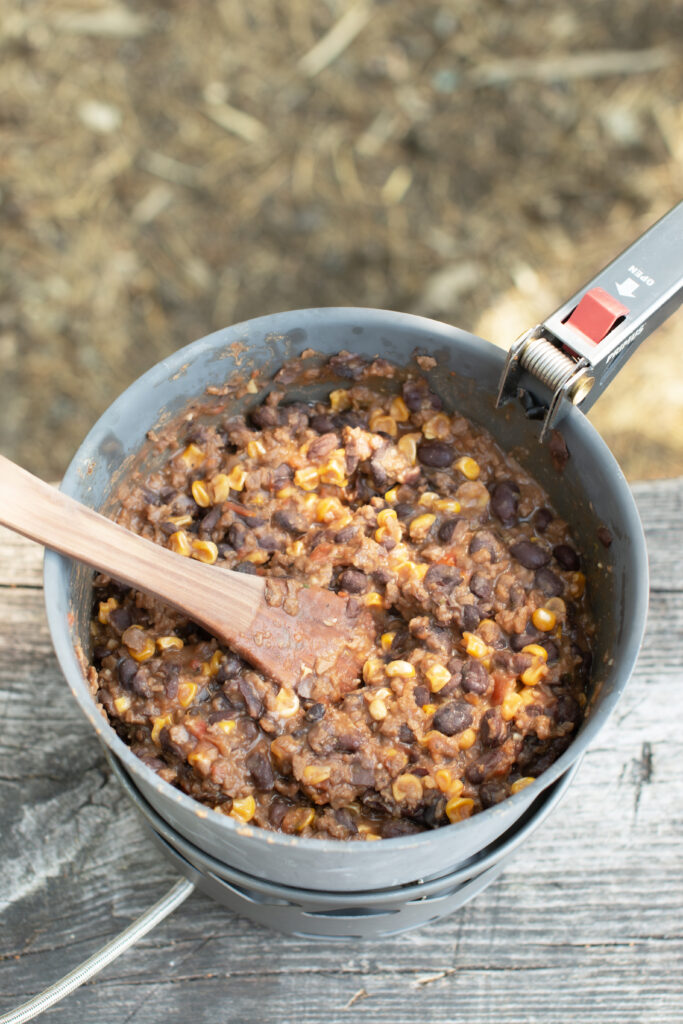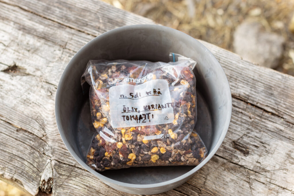 Pakkaa mustapavut, maissi ja salsa suljettavaan pakastuspussiin tai astiaan. Mittaa joukkoon sopiva määrä soijarouhetta. Pakkaa punakaalislaw’n kuivatut ainekset omaan pakkaukseensa ja rypsiöljy ja viinietikka tiiviisiin pulloihin. Pakkaa sokeri, suola ja mustapippuri omiin pakkauksiinsa.