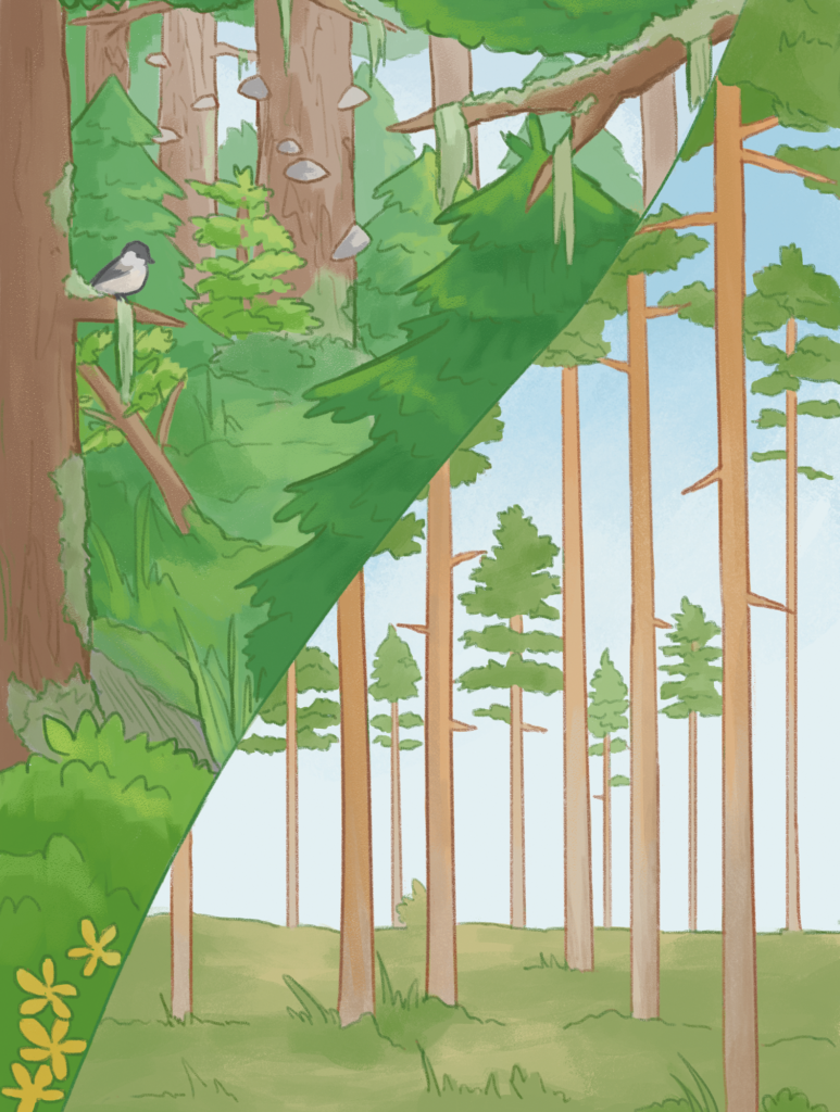 Luonnon kannalta on aivan eri asia, puhutaanko koskemattomasta luonnontilaisesta metsästä, vanhasta luonnontilaisen kaltaisesta metsästä vai talousmetsästä.