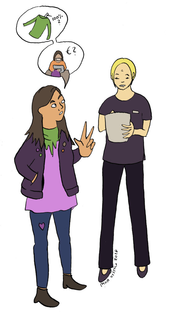 Myös mieltymyksillä on väliä. Oman maun mukaista vaatetta käyttää kuluneempanakin, ja laadukaskin vaateostos on turhaa kulutusta, jos ostostaan ei sitten tule käyttäneeksi.