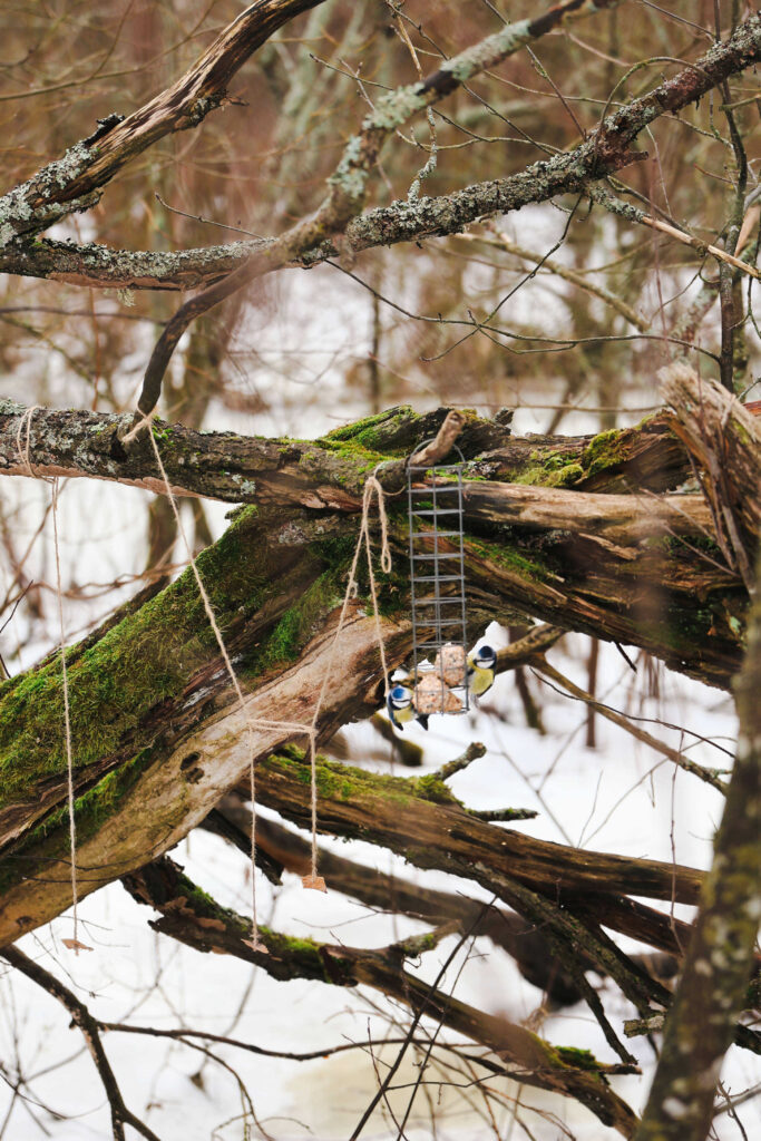 Pysähdymme hetkeksi kuvaamaan ruokintapaikan sinitiaisia. Vaikka talvi on riisunut luonnon vehreydestään, se on silti elämää täynnä. Siellä ja täällä hyppii ohi mustarastas, jos toinenkin. Puukiipijä vilahtaa jostain puun takaa. Yläpuolellamme lauletaan kuin viimeistä päivää. Selvästikin Lammassaaren ympäristö on siivekkäiden lempipaikka. Kipuamme vallan hienoon Pornaistenniemen lintutorniinkin.