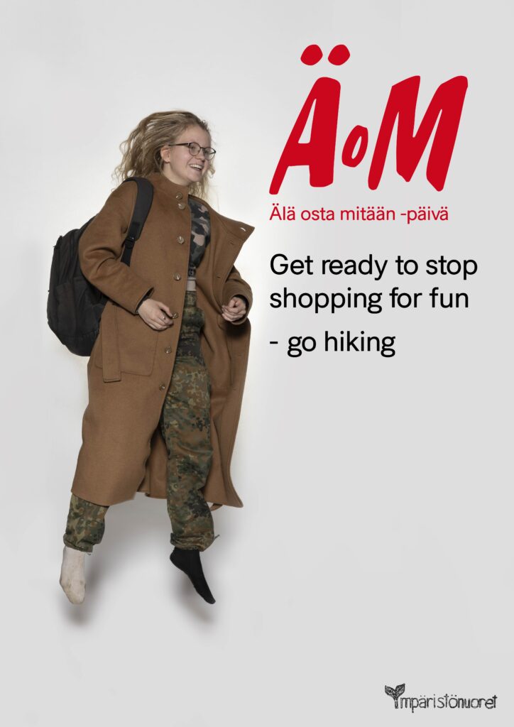 Tämä tavoitteenaan Luontoliiton Hämeen piirin Ympäristönuoret ideoivat ja toteuttivat pikamuotiaiheisia vastamainoksia Älä osta mitään -päivän tempausta varten. Ryhmällä oli ollut jo pidempään mielessä tehdä taideaktivismia, ja mainoksiin tarttuminen tuntui hyvältä ajatukselta Black Fridayn alla.