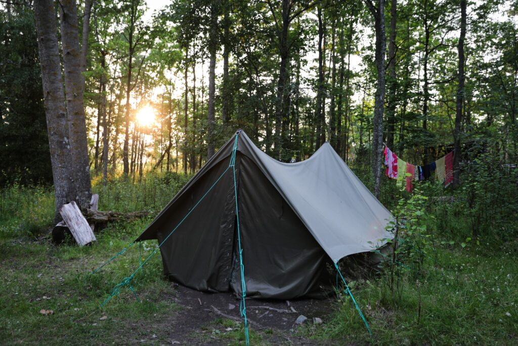 Täpötäydellä telttapaikalla ahdistaa. Olen iloinen, että kaikki nämä ihmiset ovat lähteneet diginäyttöjensä ääreltä luontoon, mutta tuntuu siltä, että olen saapunut toriaukiolle.